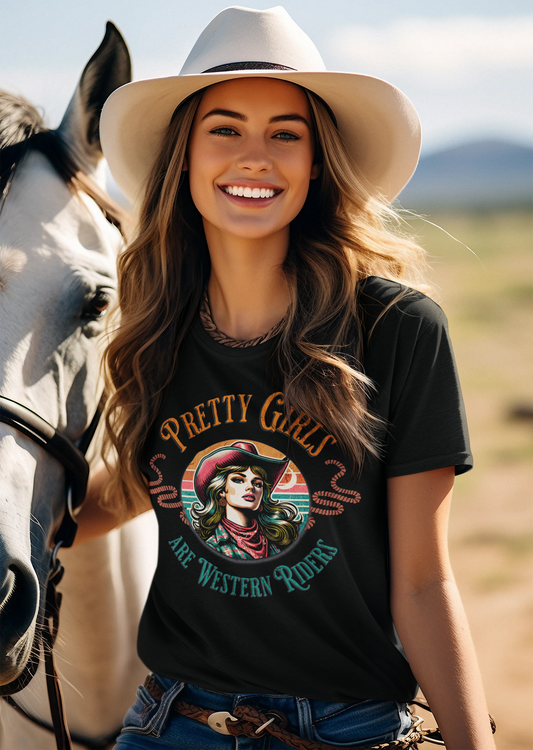 Pretty Girls Are Western Riders - Damen T-Shirt aus Bio-Baumwolle (Frontprint)